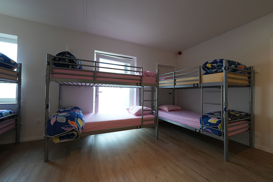 Ce dortoir comprend une salle de bain privative équipée d'une douche, d'un bidet, d'un sèche-cheveux et de chaussons. Il dispose de 6 lits superposés pour un séjour confortable et convivial. Superficie : 30 m².