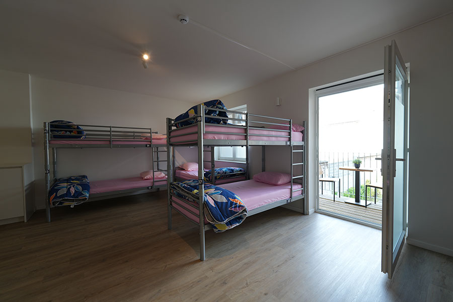 Ce dortoir comprend un lave-linge, une cafetière/théière, une terrasse avec vue sur le jardin et une salle de bain commune avec douche. Il dispose de 6 lits superposés. Superficie : 30 m².